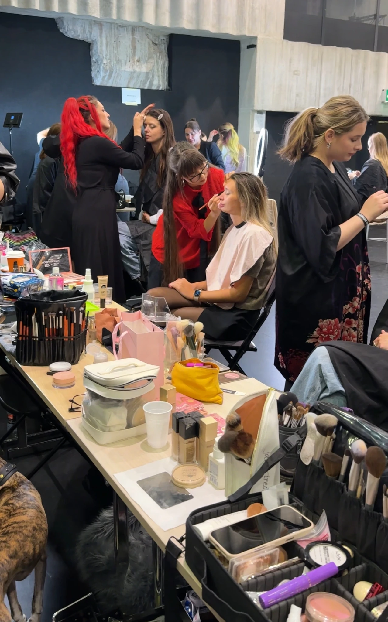 GlamEst meigitiim @ Tallinn Fashion Week 2025, kus GlamEst vastutas Mammu Couture ja Toivo Freeman Pilt modellide meikide eest.